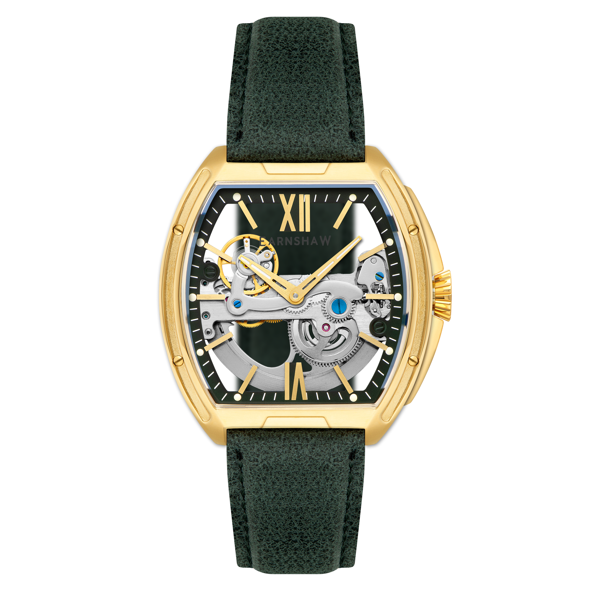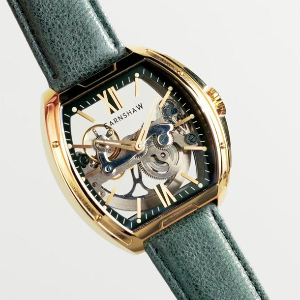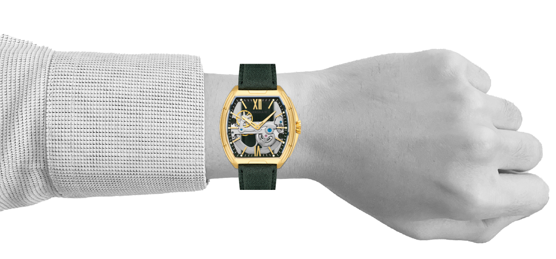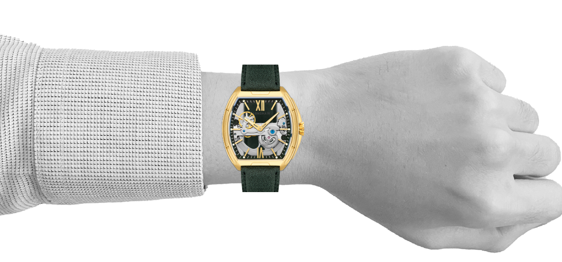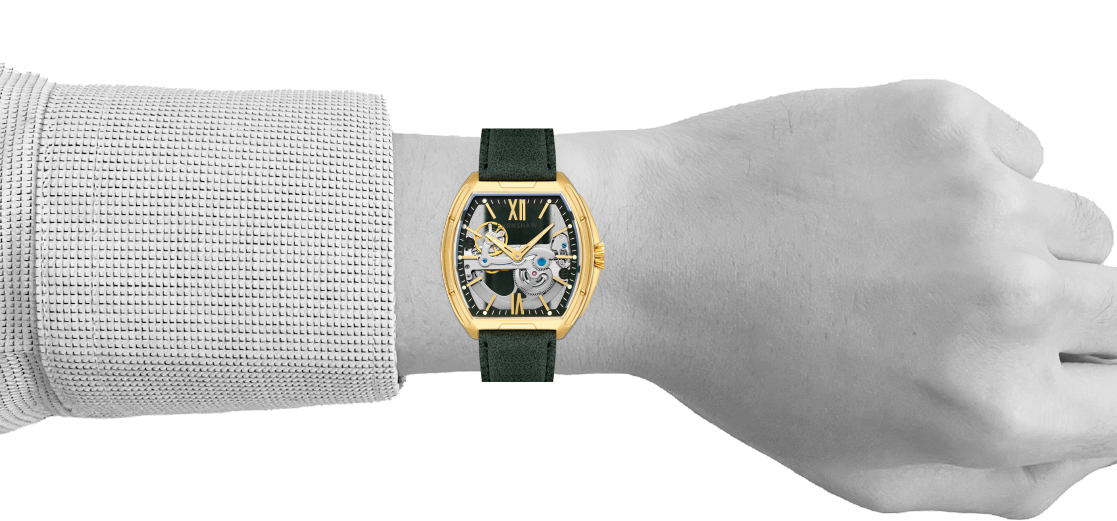 Sleek and striking, the Knightsbridge Automatic embraces openwork design with a fully transparent dial and exposed movement. Housed in a 45mm barrel-shaped case, this spectacular timepiece features Roman numeral accents and a double-curved lens. Pairing traditional elegance with contemporary flair, it redefines classic watchmaking.