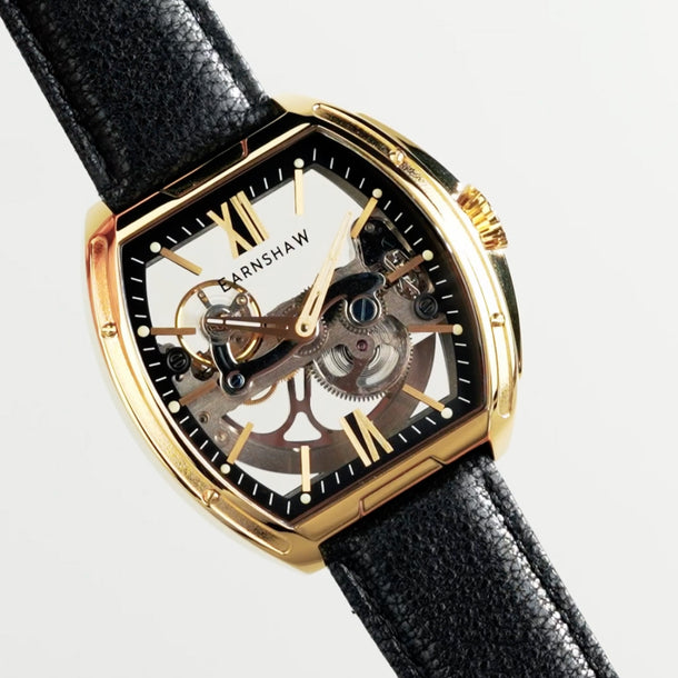 Sleek and striking, the Knightsbridge Automatic embraces openwork design with a fully transparent dial and exposed movement. Housed in a 45mm barrel-shaped case, this spectacular timepiece features Roman numeral accents and a double-curved lens. Pairing traditional elegance with contemporary flair, it redefines classic watchmaking.