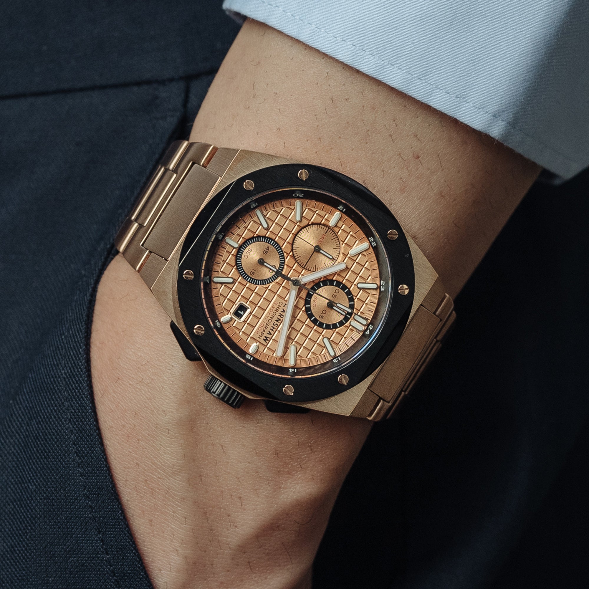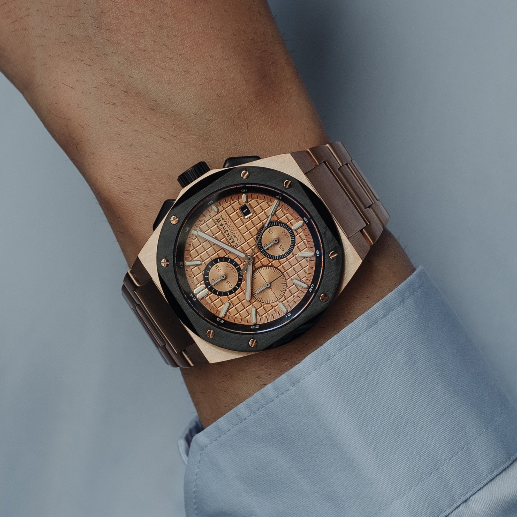 A new expression in the Earnshaw vocabulary of watch design. The Bessemer is a robust, geometric, and industrial in build and refinement. Strong and bold, it nonetheless carries the sophistication, detail and finesse of the Earnshaw legacy of quality timekeeping