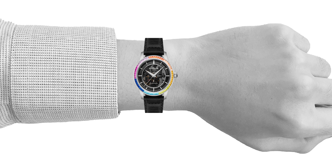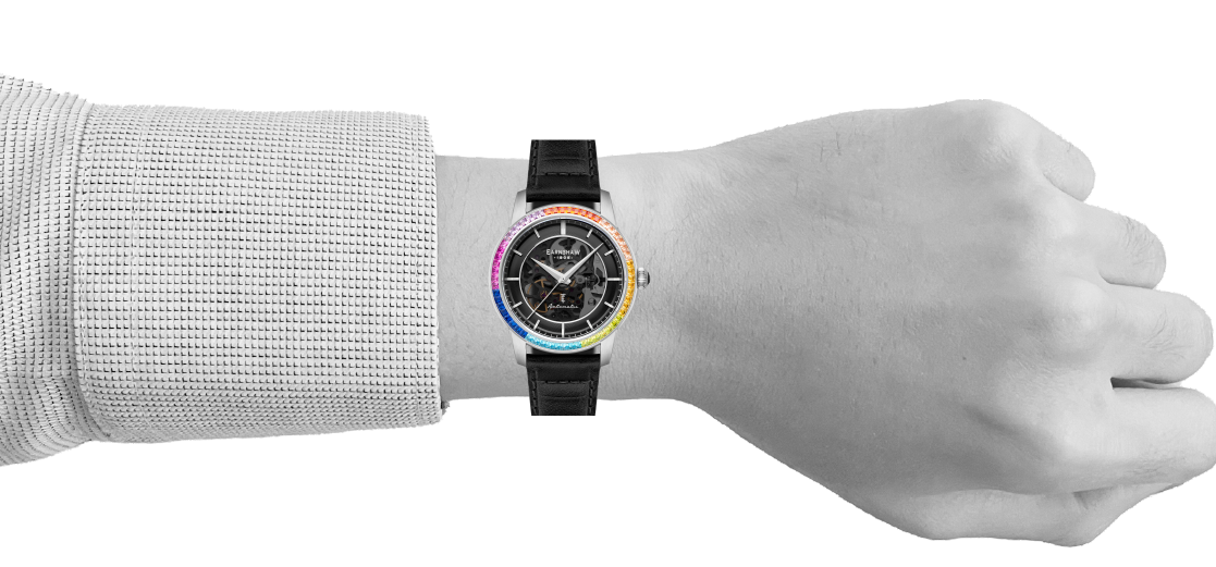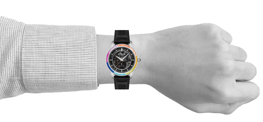 Crafted in a polished 40mm stainless steel case, the true spectacle of Celestial Glory lies in the bezel—lavishly adorned with shimmering stones that orbit the dial like stars in motion. This celestial flourish enhances the construction of the open-worked dial, evoking the beauty of the night sky in motion—elegant, complex, and infinite.