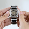 Encased in a compact square silhouette at 36.5mm, the Lennox reveals the intricate mechanics of its automatic skeleton movement. Finished with a stainless steel bracelet and butterfly clasp, this square-cased skeleton watch balances precision with personality.