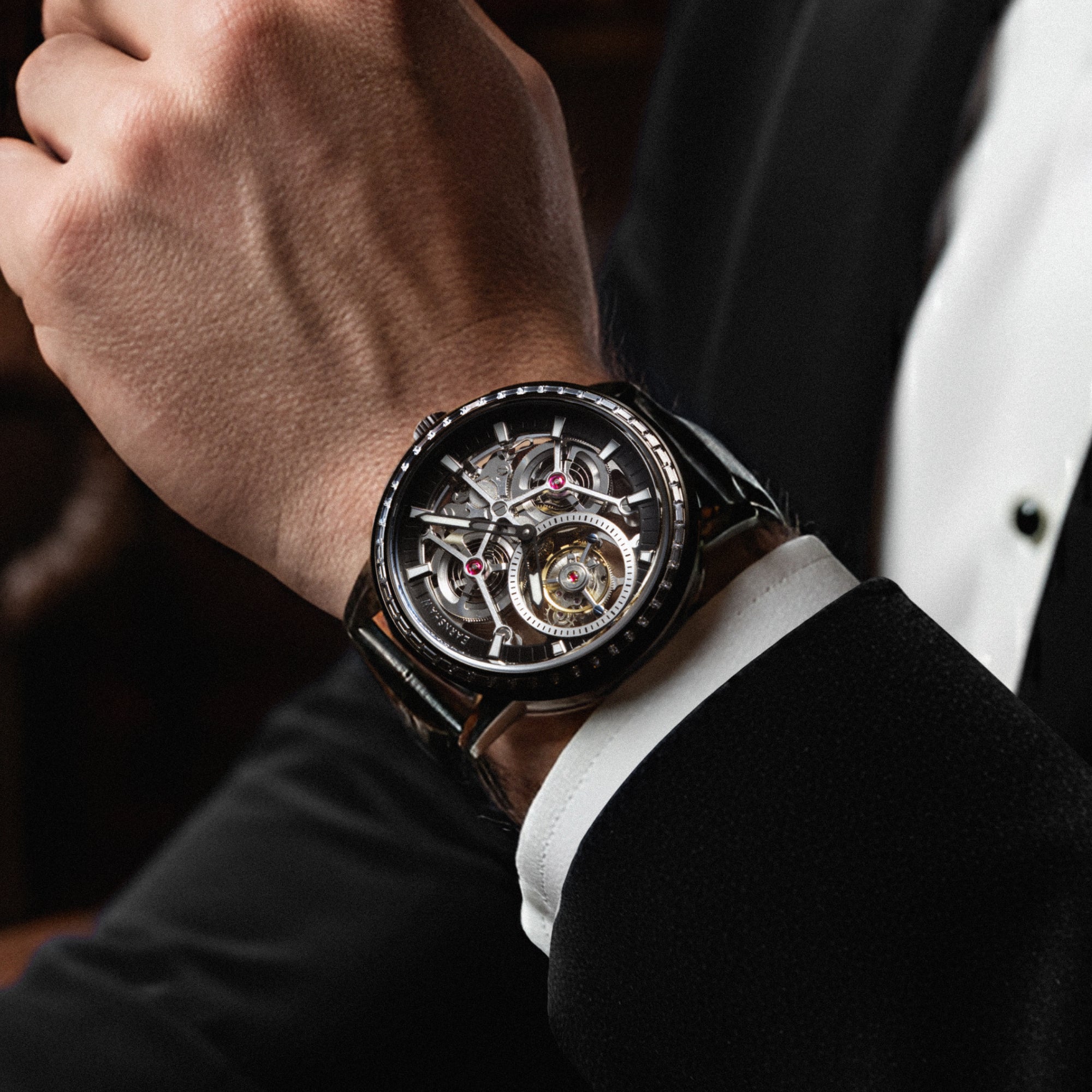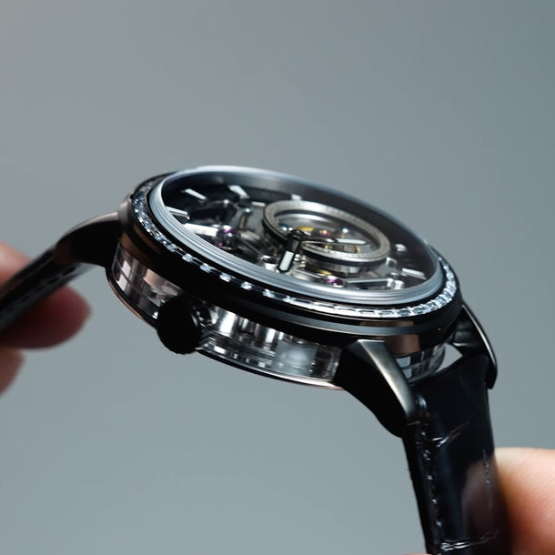 Experience the pinnacle of horological artistry with the Parsons Tourbillon. Crafted with a captivating skeleton dial, a transparent caseback, and glass side panels, the Parsons offers a mesmerising view into the intricate mechanics at its core.