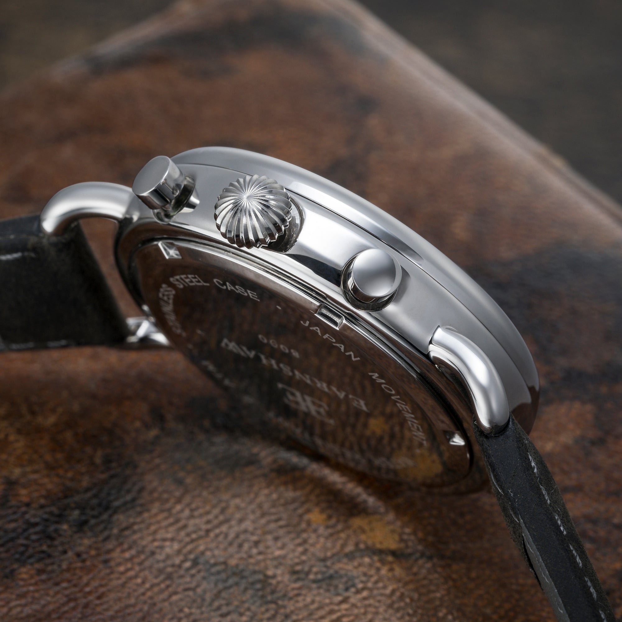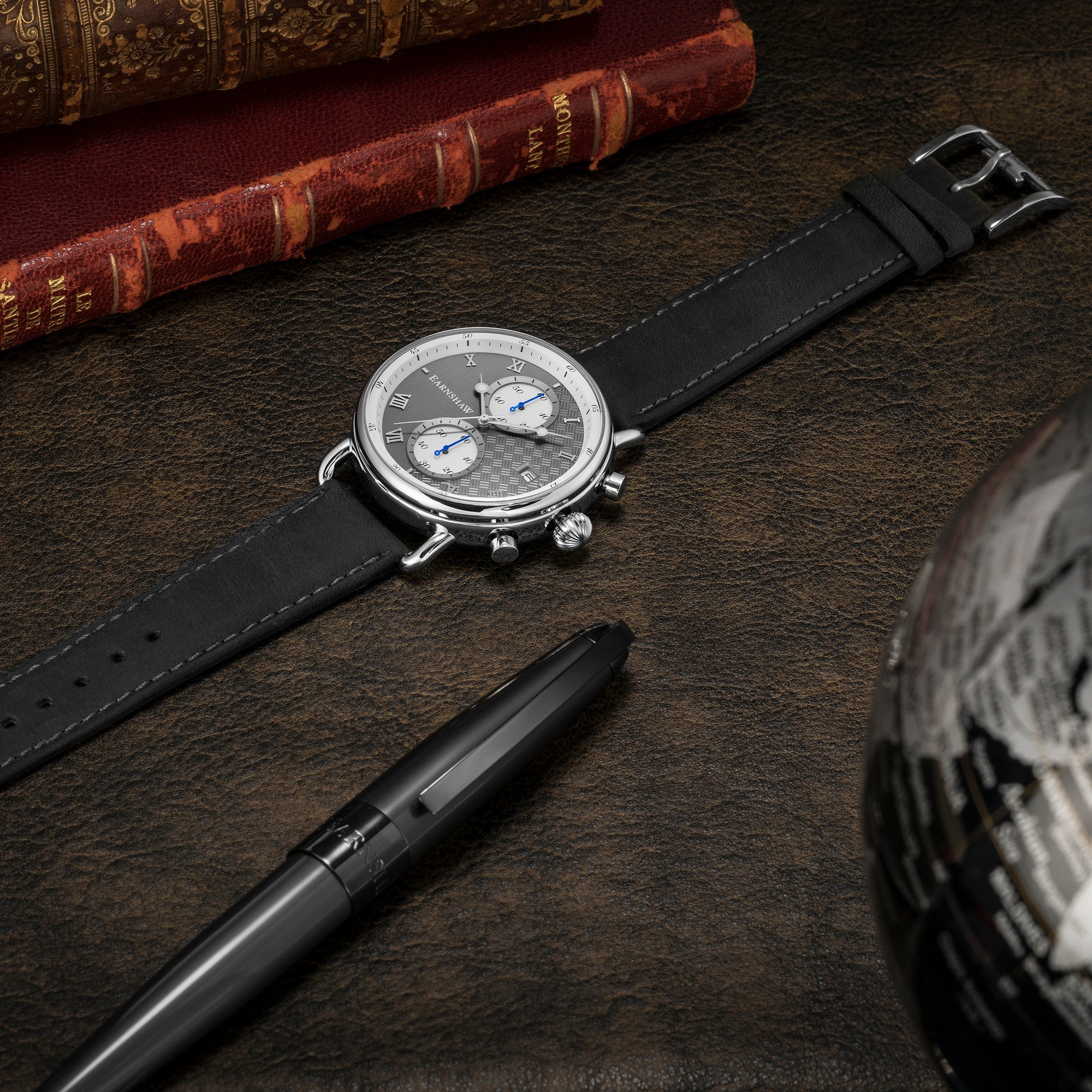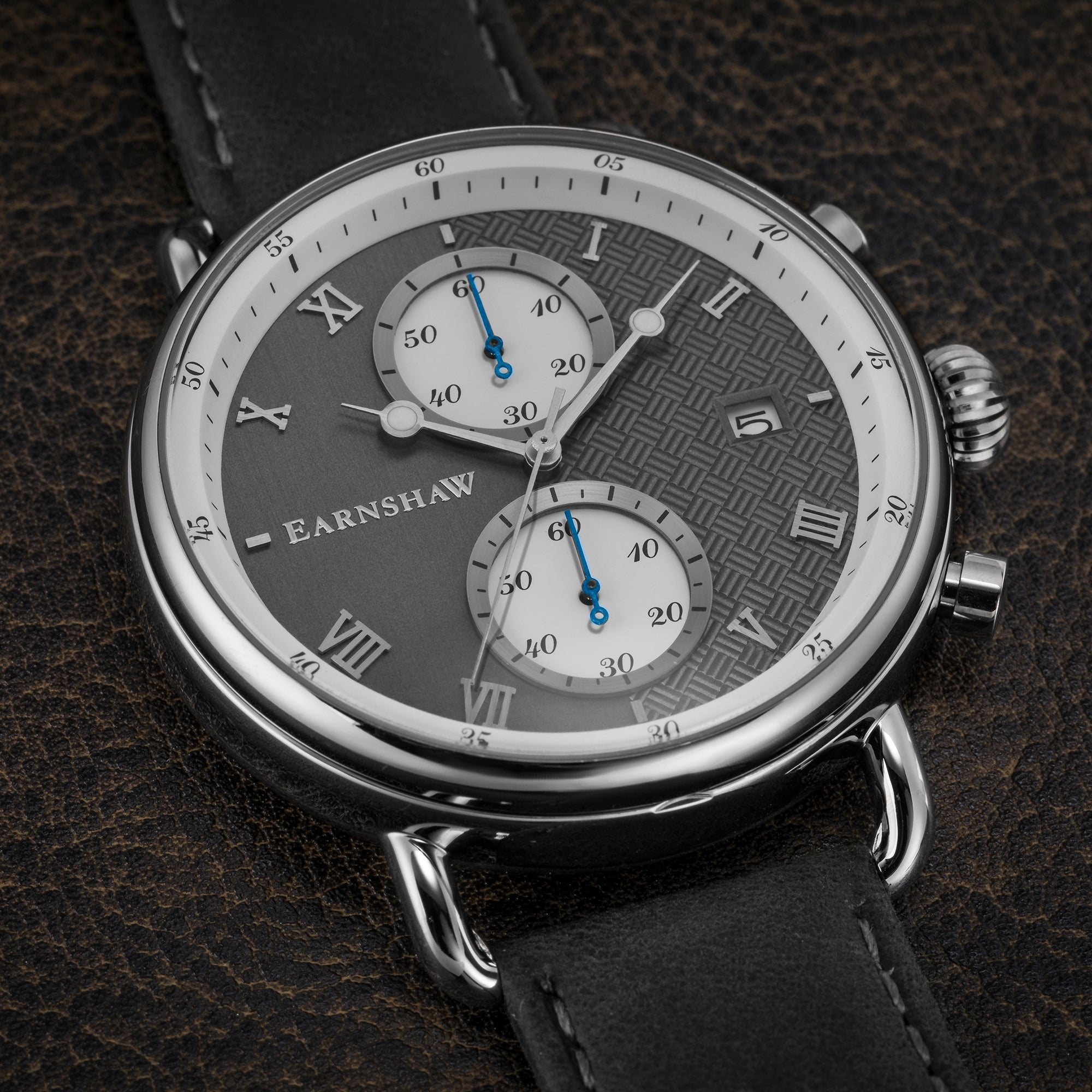 Elegance through the style and form of a classic "Trench" style timepiece that echoes the best of WWII era watch design in a masculine, yet elegant timepiece. With precision quartz chronograph functionality this watch delivers all the reliability, all the style, and all the effortless elegance you'd expect from the Earnshaw brand.