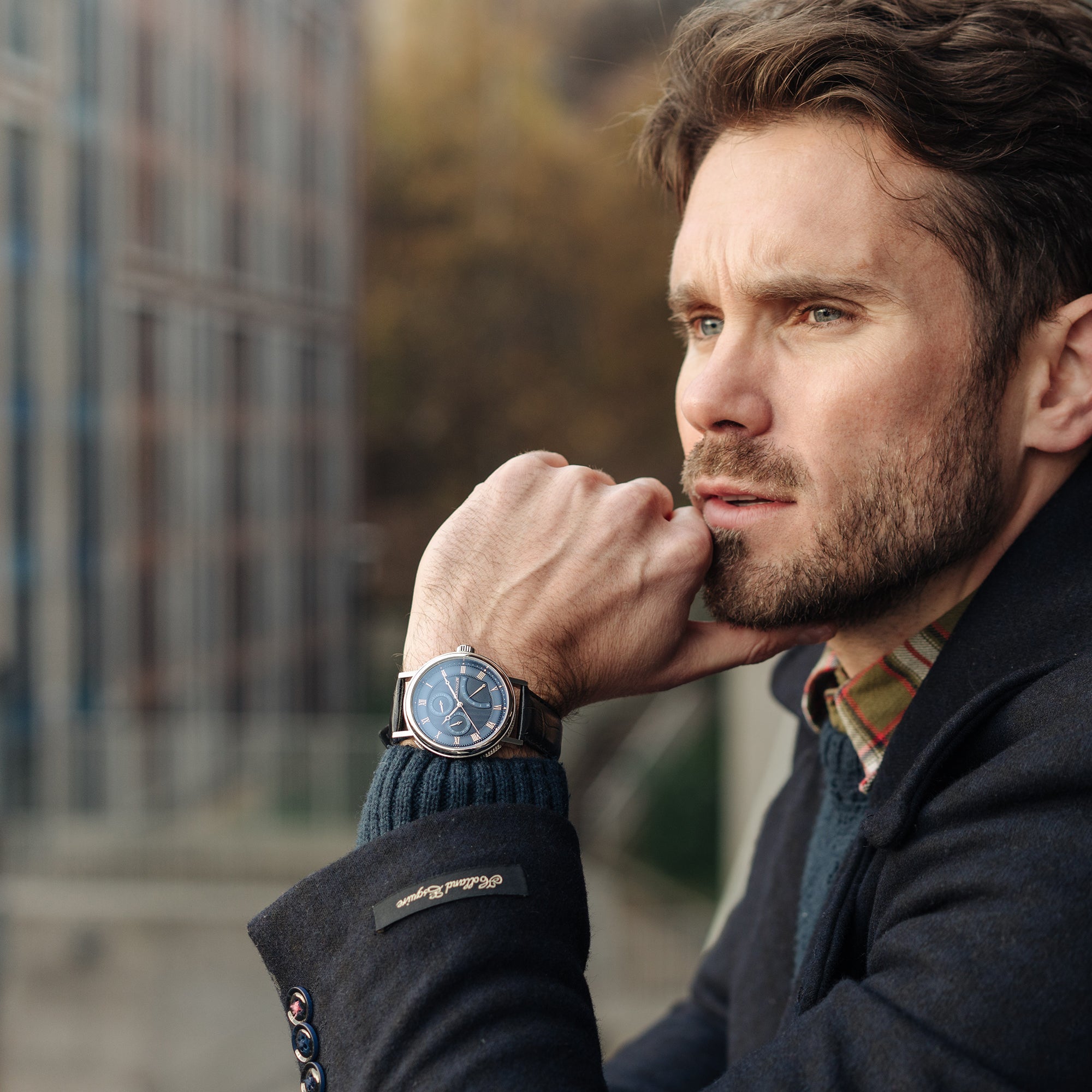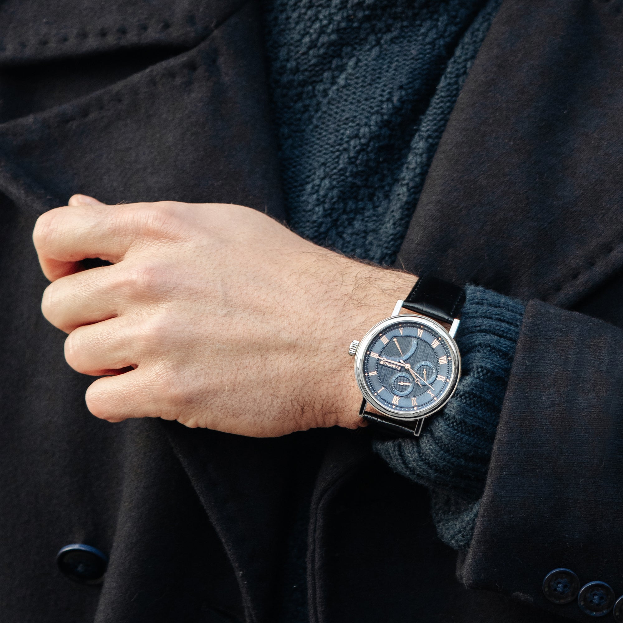 The Beaufort is a striking embodiment of refined elegance and masterful craftsmanship, designed for those who appreciate timeless sophistication. Housed in a polished 43mm case, this timepiece is powered by a precise Japan Quartz movement and features multifunction displays with a retrograde complication—offering both visual intrigue and practical utility. The classic Roman numeral indices, blued hands, and textured dial evoke a vintage charm, it is a distinguished accessory for the modern gentleman.