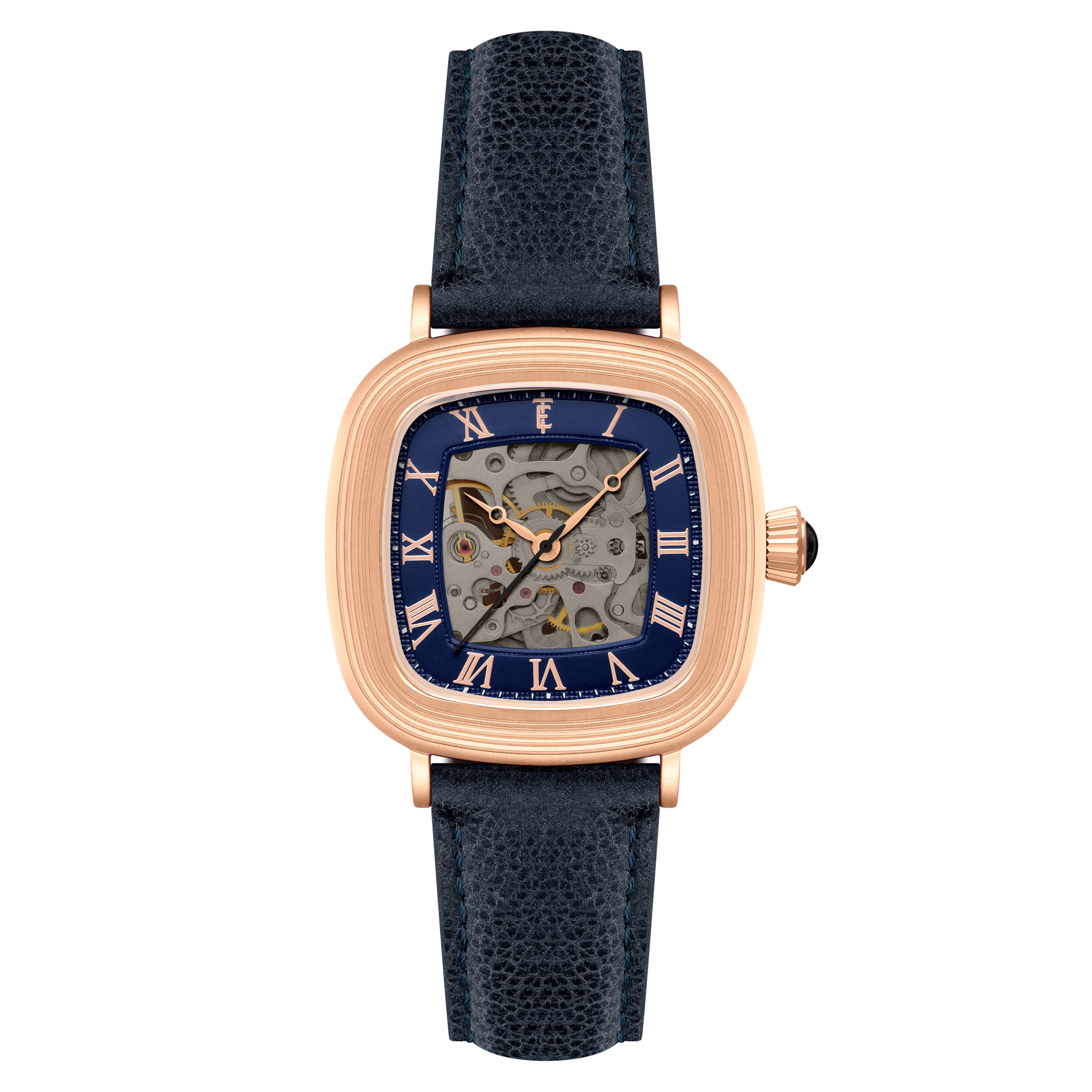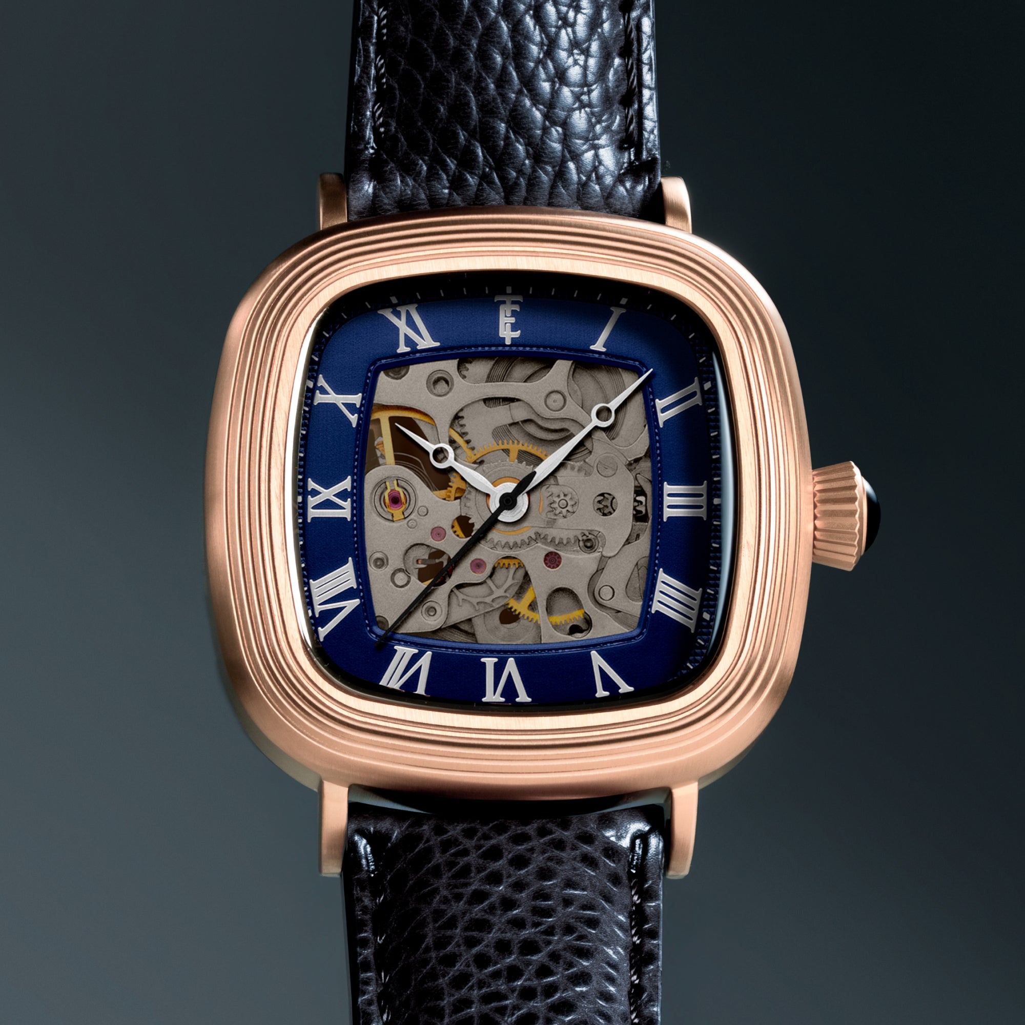 With its compact 38mm square case, the Chester is designed for balance. The timepiece also reveals its mechanical heartbeat with its skeleton dial and see-through exhibition caseback. Effortlessly refined for both everyday wear and formal elegance, the Chester brings sophistication and character together in one clean, square form.