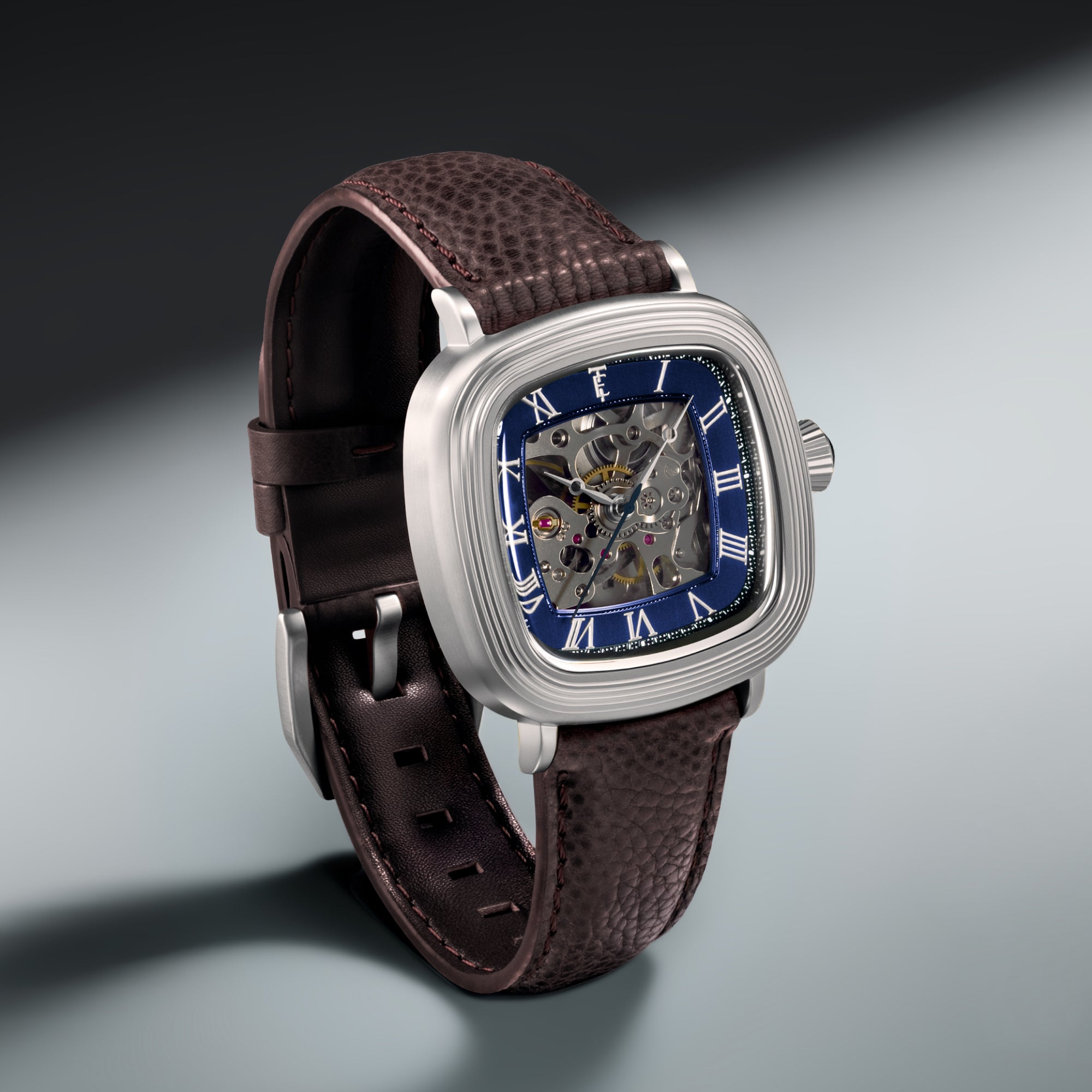 With its compact 38mm square case, the Chester is designed for balance. The timepiece also reveals its mechanical heartbeat with its skeleton dial and see-through exhibition caseback. Effortlessly refined for both everyday wear and formal elegance, the Chester brings sophistication and character together in one clean, square form.