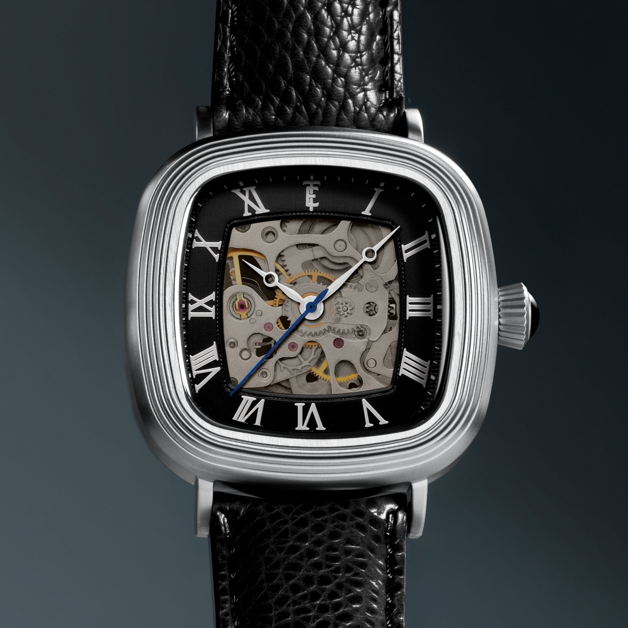 With its compact 38mm square case, the Chester is designed for balance. The timepiece also reveals its mechanical heartbeat with its skeleton dial and see-through exhibition caseback. Effortlessly refined for both everyday wear and formal elegance, the Chester brings sophistication and character together in one clean, square form.