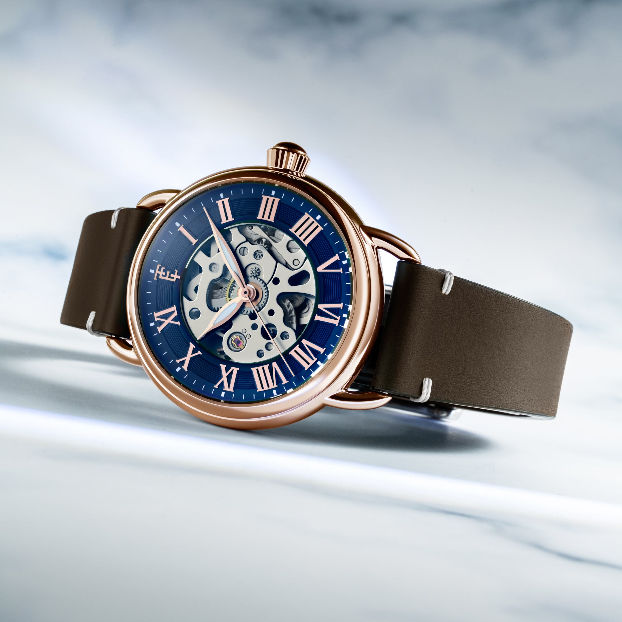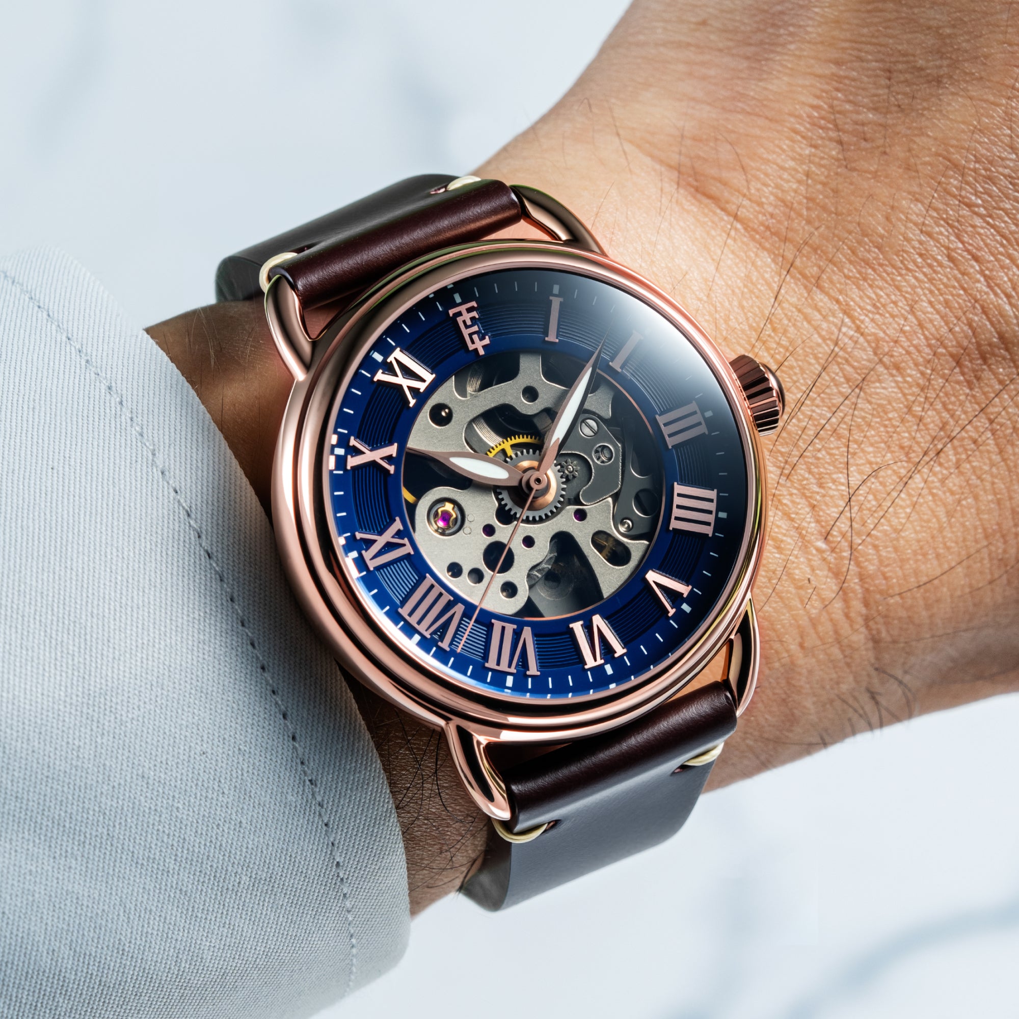 Masterfully crafted for those who appreciate the art of time, the Investigator 40 is a perfectly-sized timepiece with a skeleton dial, which exposes the mesmerising complexity of its automatic movement, complemented by an elegant chapter ring and Roman numerals for a modern vintage flair. Turn it over to admire the exhibition case back—a window into the mechanics that power your every moment.
