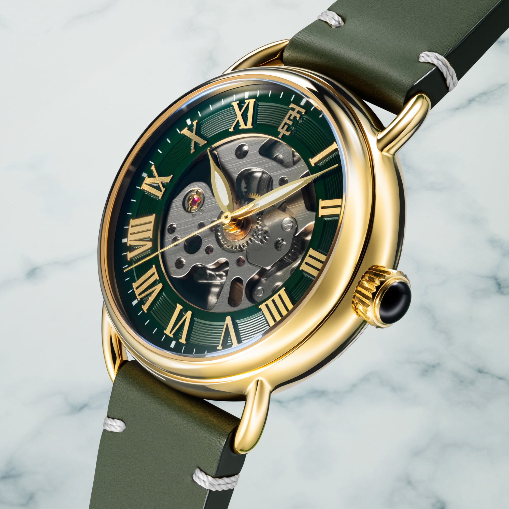 Masterfully crafted for those who appreciate the art of time, the Investigator 40 is a perfectly-sized timepiece with a skeleton dial, which exposes the mesmerising complexity of its automatic movement, complemented by an elegant chapter ring and Roman numerals for a modern vintage flair. Turn it over to admire the exhibition case back—a window into the mechanics that power your every moment.