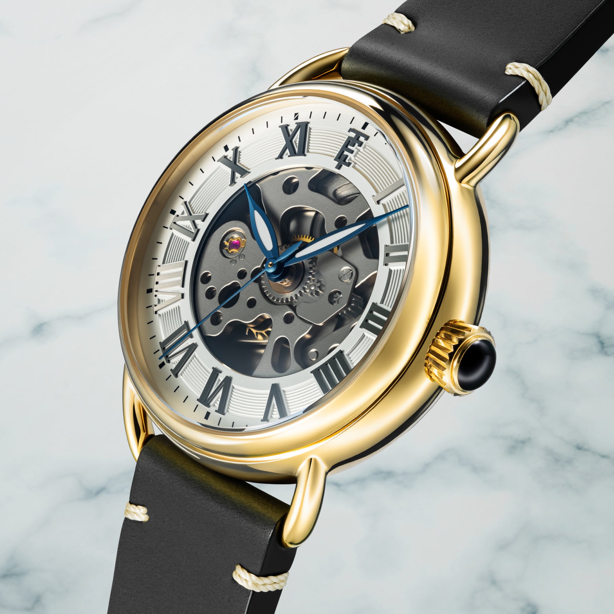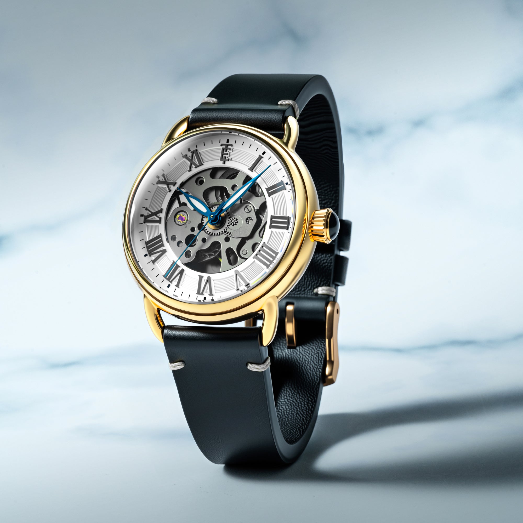 Masterfully crafted for those who appreciate the art of time, the Investigator 40 is a perfectly-sized timepiece with a skeleton dial, which exposes the mesmerising complexity of its automatic movement, complemented by an elegant chapter ring and Roman numerals for a modern vintage flair. Turn it over to admire the exhibition case back—a window into the mechanics that power your every moment.