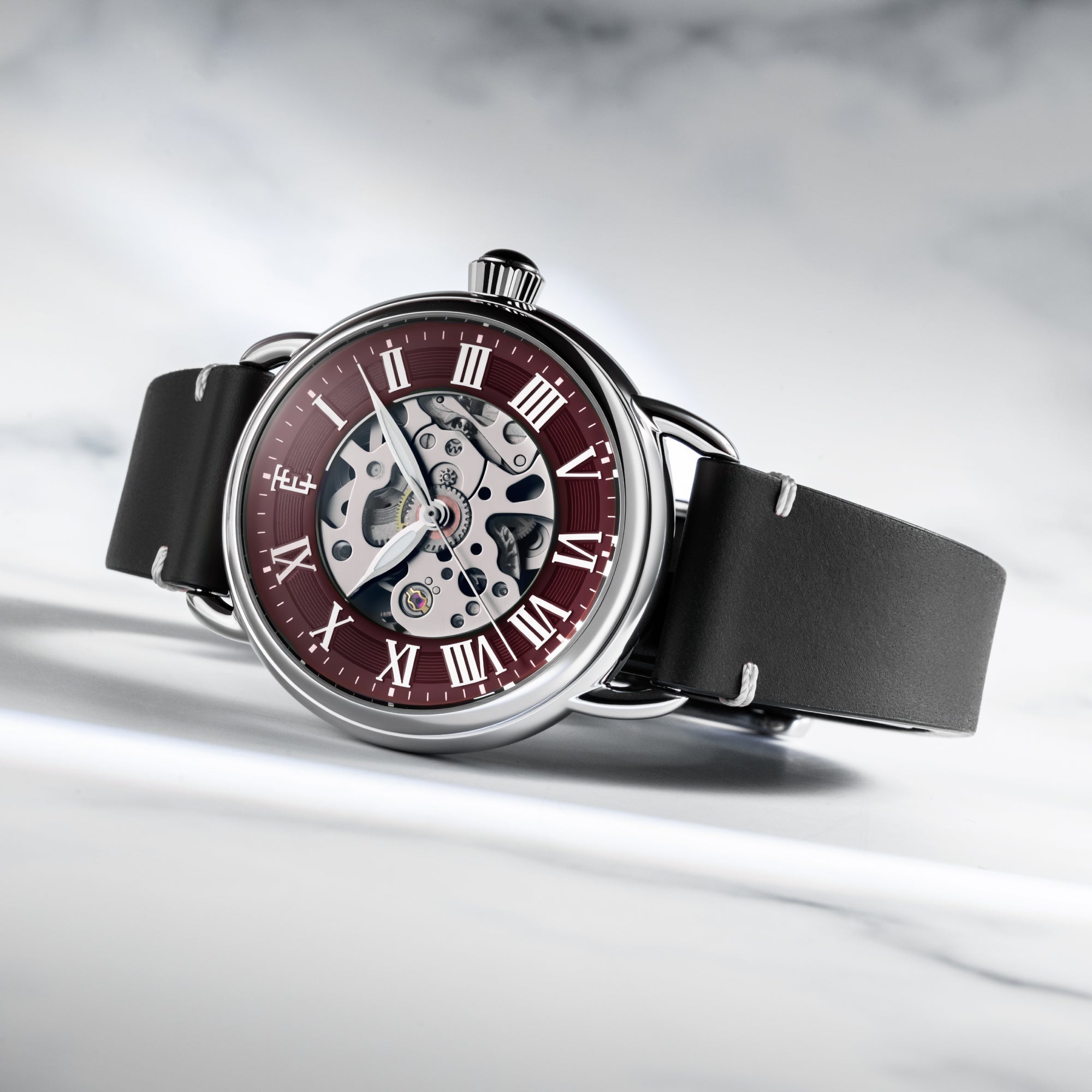 Masterfully crafted for those who appreciate the art of time, the Investigator 40 is a perfectly-sized timepiece with a skeleton dial, which exposes the mesmerising complexity of its automatic movement, complemented by an elegant chapter ring and Roman numerals for a modern vintage flair. Turn it over to admire the exhibition case back—a window into the mechanics that power your every moment.
