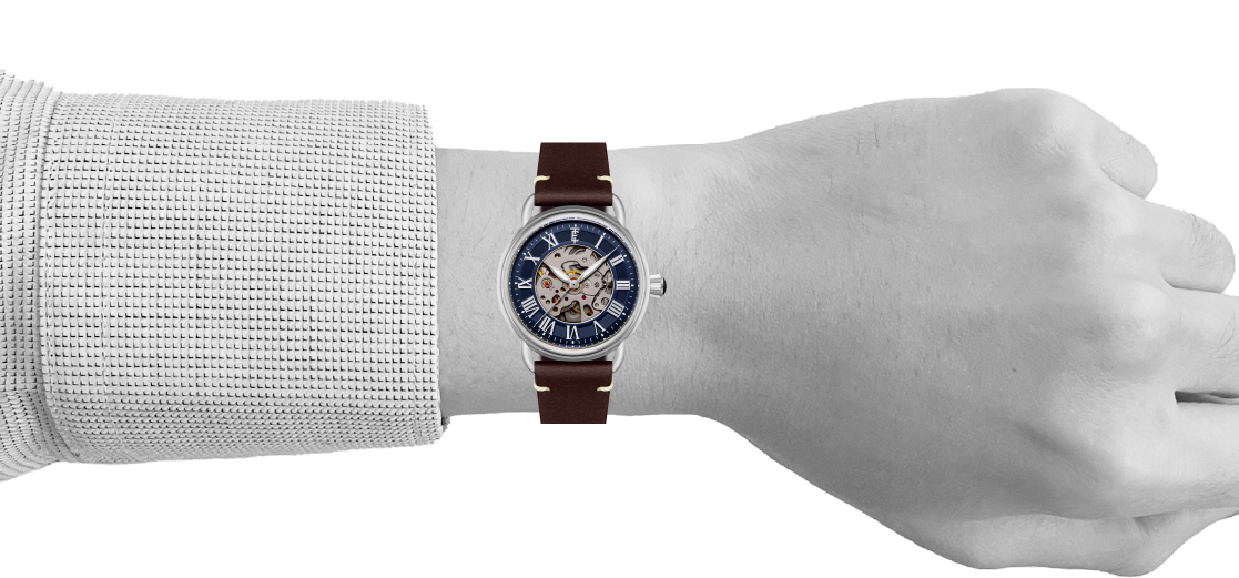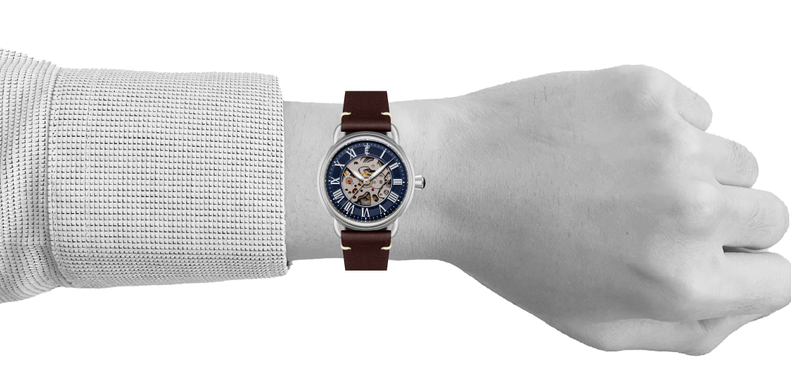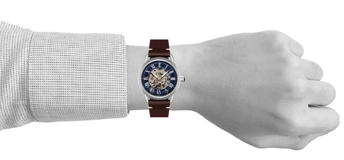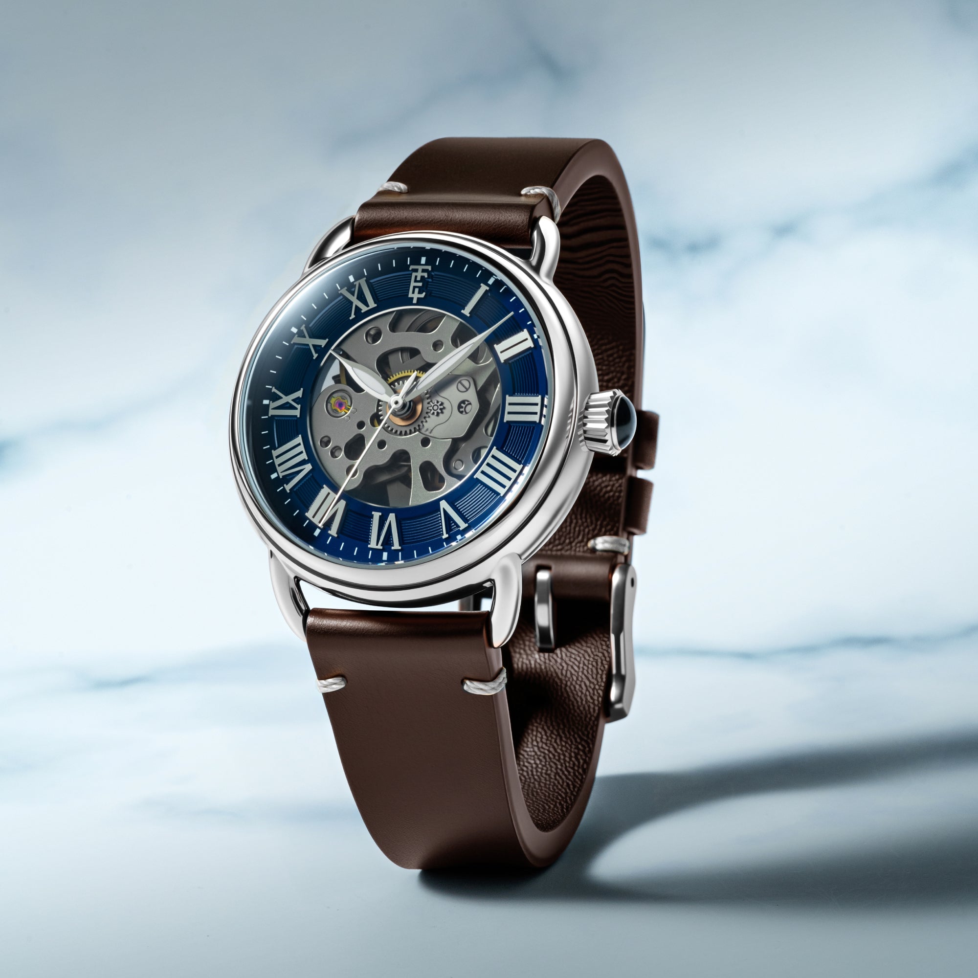 Masterfully crafted for those who appreciate the art of time, the Investigator 40 is a perfectly-sized timepiece with a skeleton dial, which exposes the mesmerising complexity of its automatic movement, complemented by an elegant chapter ring and Roman numerals for a modern vintage flair. Turn it over to admire the exhibition case back—a window into the mechanics that power your every moment.