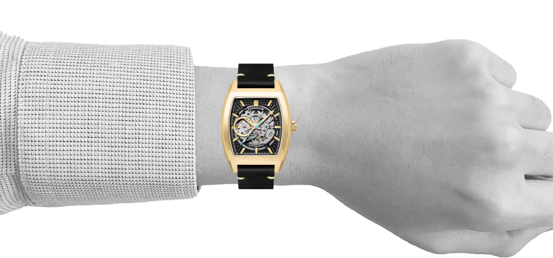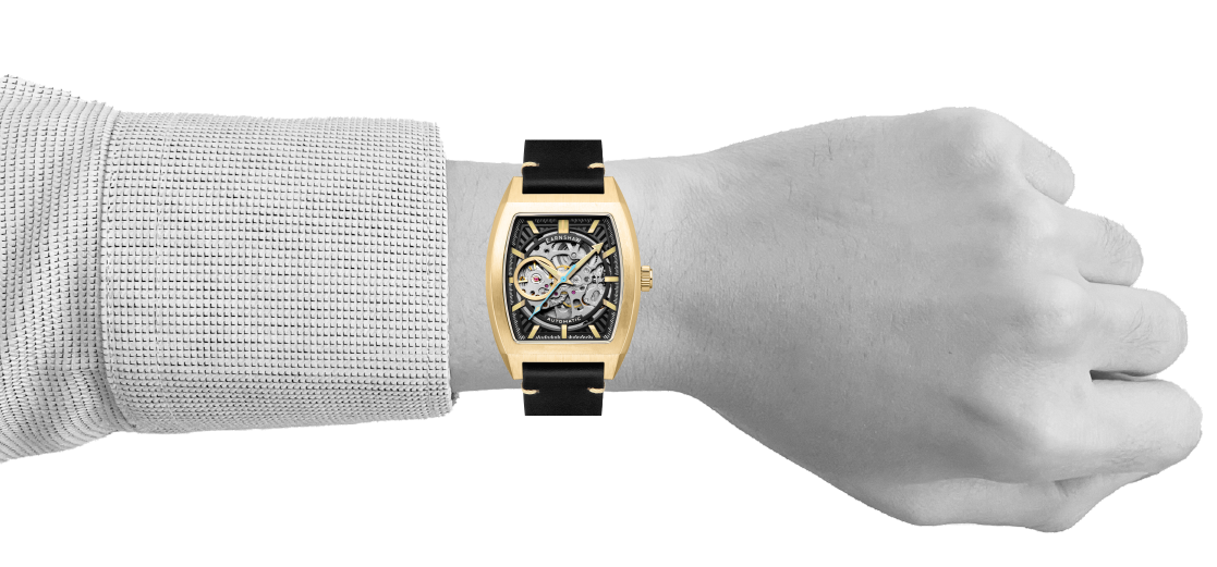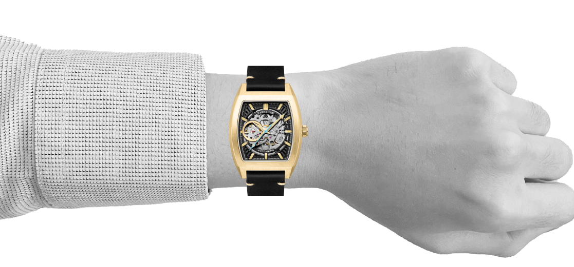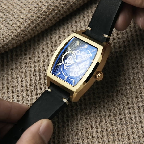 Framed in a sleek 40mm barrel case, the open-worked construction invites you into the core of the automatic movement. Finished with luminous hands and an exhibition caseback, the Wellington is designed for those who admire beauty in motion.