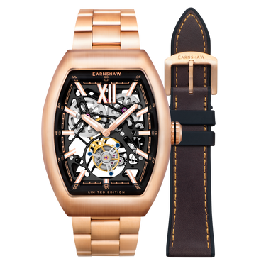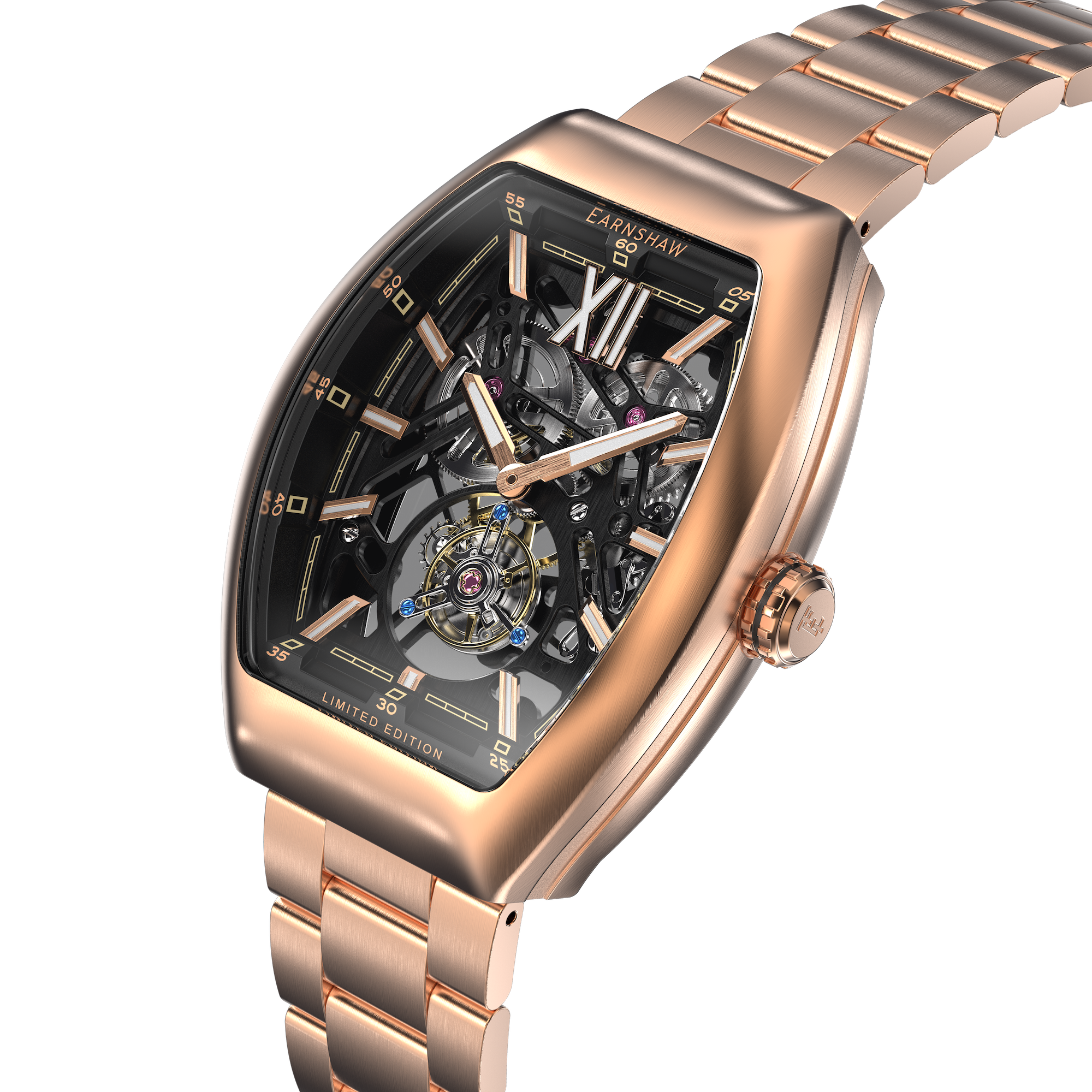 A truly special timepiece. The Supremacy Tourbillon Limited Edition is a timepiece guaranteed to captivate, inspire and ignite a passion and intrigue for timekeeping. A bold tonneau case houses a state of the art tourbillon hand-crafted and assembled by our own master watchmakers keeping alive the legacy, and the spirit of the Earnshaw name with a timepiece that is limited in numbers, in quantities available but unlimited in its ambition and power. A limited edition of only 64 pieces manufactured for purchase worldwide. Each timepiece is uniquely numbered.